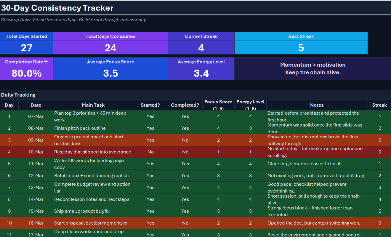 📊 30-Day Consistency Tracker — Build streaks & stay accountable