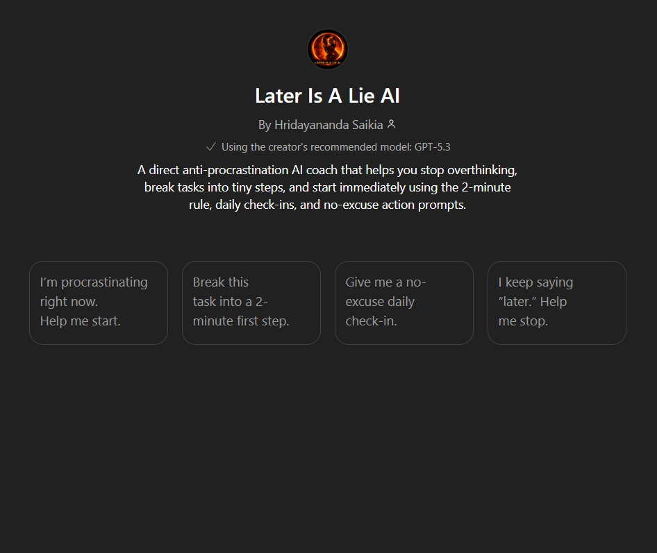 🤖 Later Is A Lie AI Coach — Tells you exactly what to do next in real time