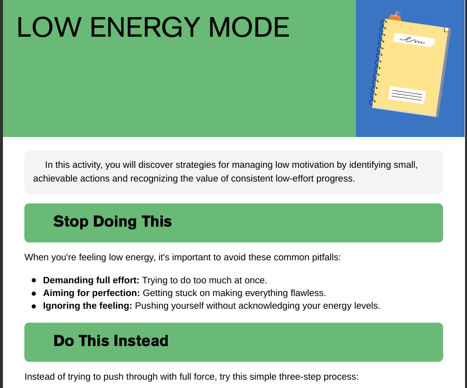 🔋 Low Energy Mode — What to do when you feel lazy or stuck