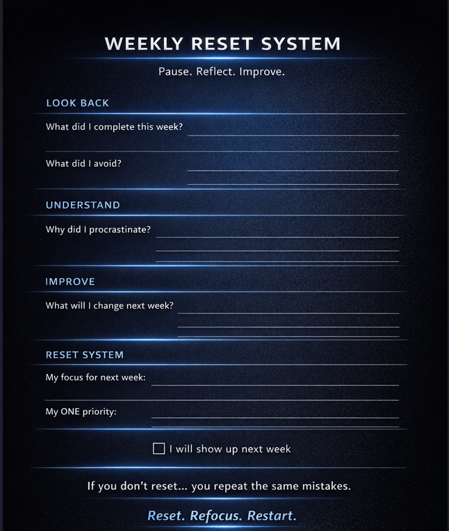 🔁 Weekly Reset Planner — Fix your week before it gets messy